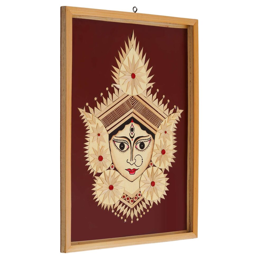 Bamboo Hand Crafted Framed Wall Hangings Of Durga Ji For Home Decor | Bamboo Framed Art For Wall Decor
